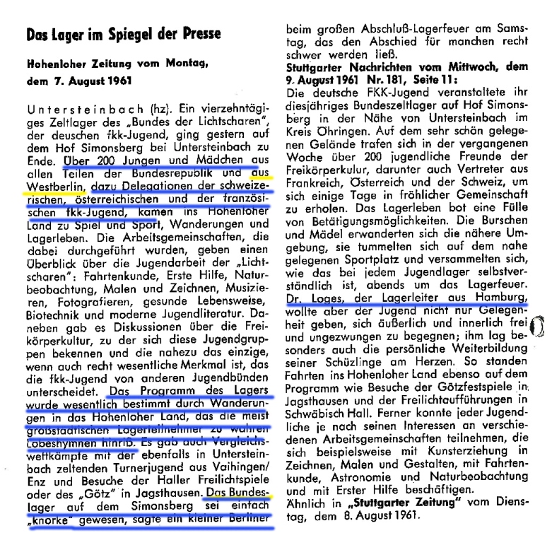 - Aus der Hohenloher Zeitung vom 07.08.1961 und Stuttgarter Nachrichten vom 09.08.1961
