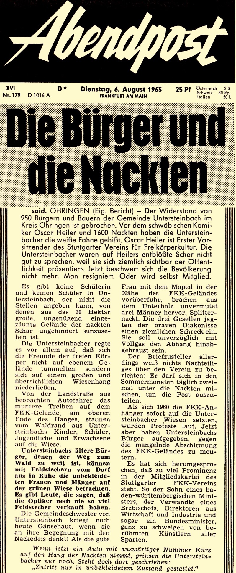 - Aus der Abendpost in Frankfurt am Main vom 06.08.1963